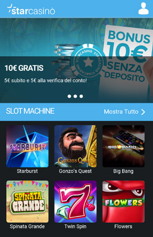Momentaneamente StarCasinò Mobile offre 6 giochi di Slot, tra cui Starburst, Gonzo’s Quest, Big Bang, Spinata Grande, Twin Spin e Flowers, e il gioco della Roulette. Ma il punto di forza sono i Giochi dal vivo, infatti StarCasinò è l’unico casinò mobile ad offrire la Roulette, il Blackjack, il Baccarat e il Casino Hold’em, diretti da Evolution Gaming, con croupier dal vivo per Smartphone e Tablet.